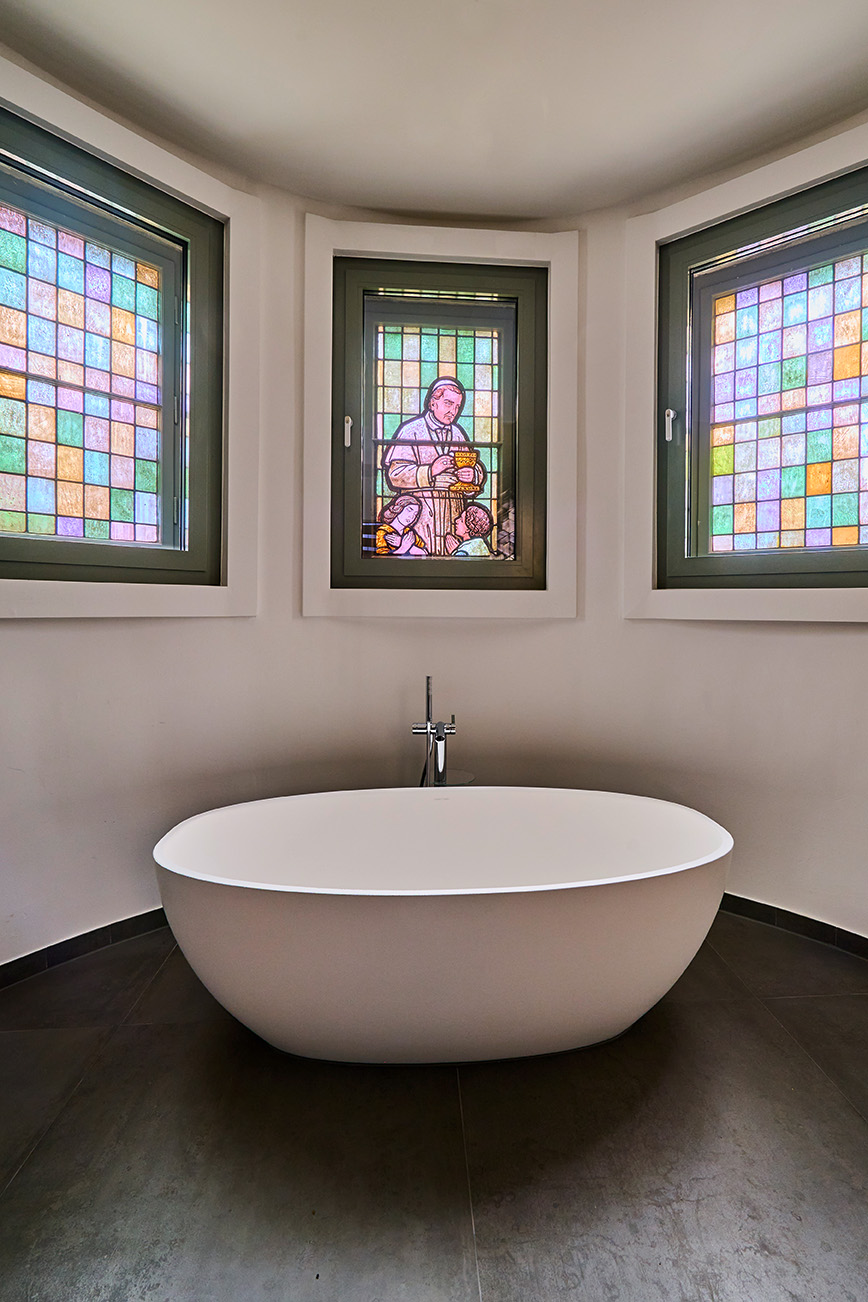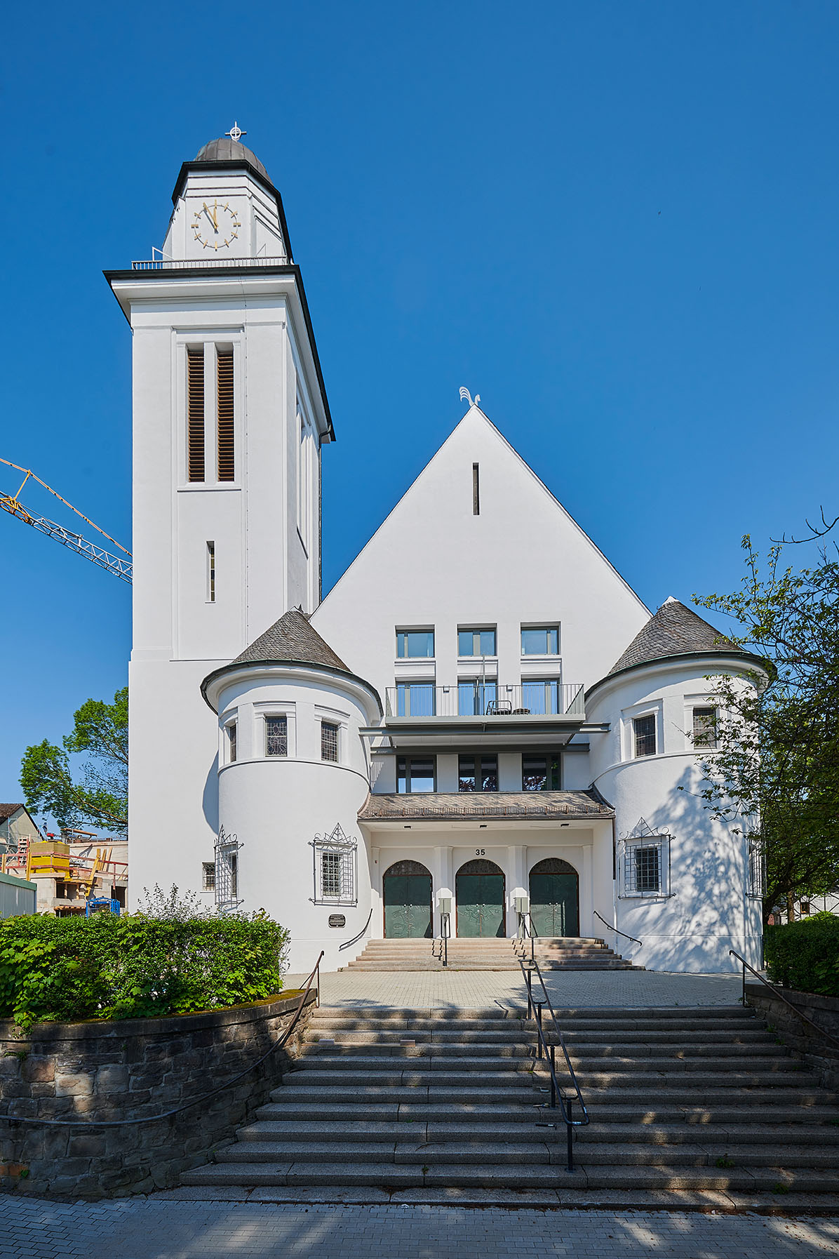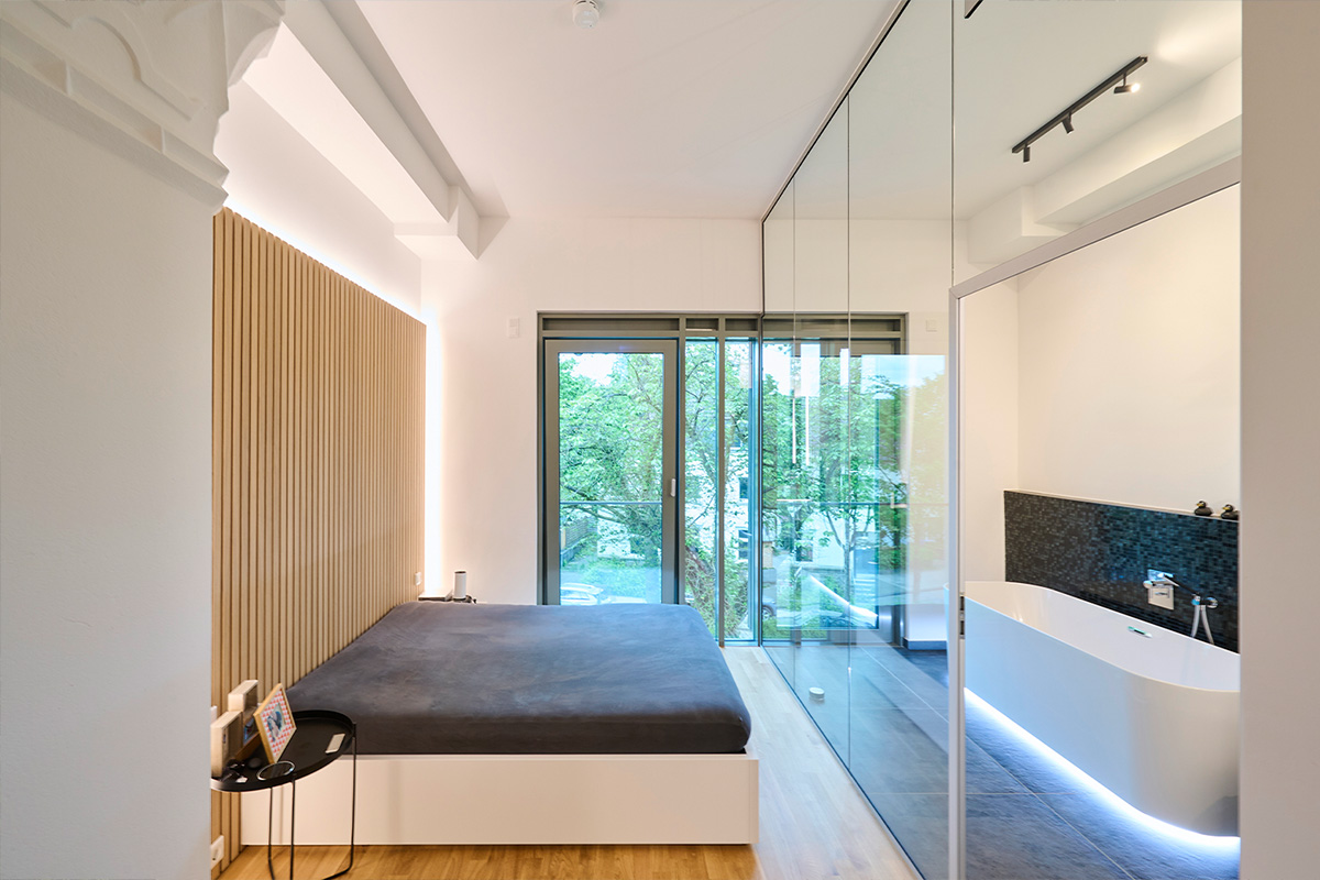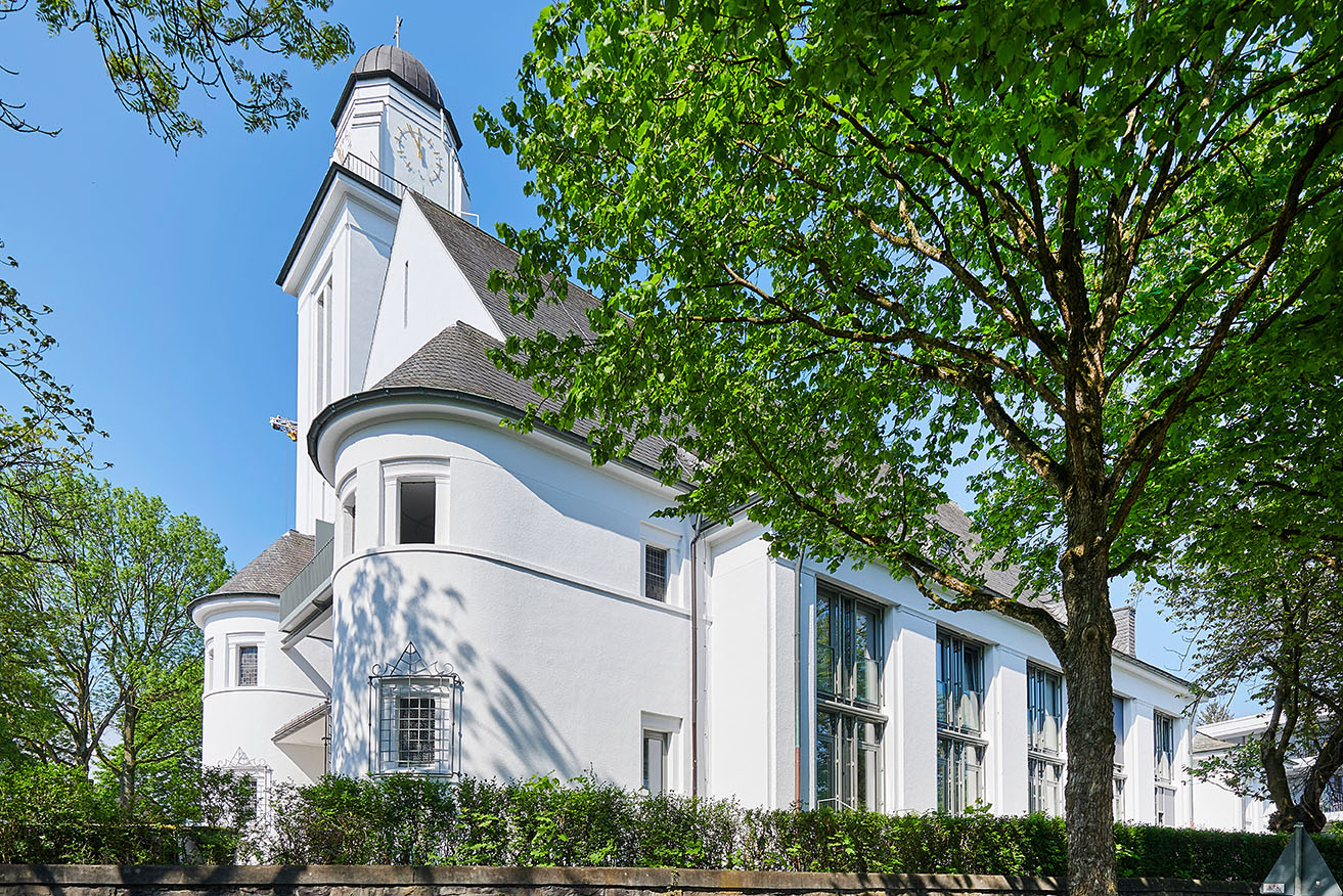 Marienkirche Essen: Ansicht frontal Marienkirche Essen: Seitenansicht Marienkirche Essen: Flur mit altem Kirchenfenster Marienkirche Essen: Schlafzimmer mit Aluminium Balkontür Marienkirche Essen: Pfosten-Riegel-KonstruktionenMarienkirche Essen mit angrenzendem NeubauMarienkirche Essen: alte Kirchenfenster im BadMarienkirche Essen: Küche und Wohnzimmer mit Aluminium Balkontür