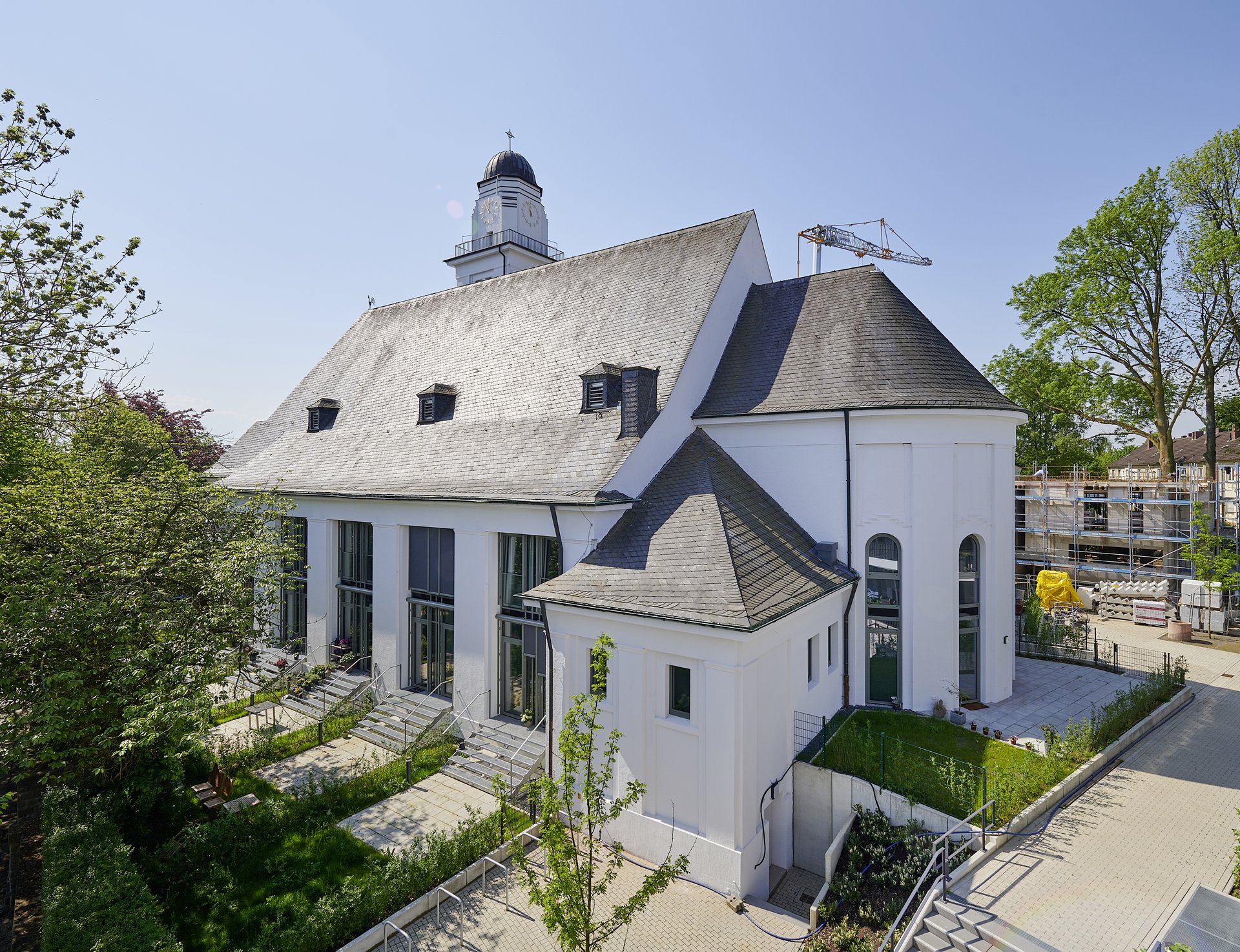 Zahl der Wohneinheiten: zwölf Wohnungen in der ehemaligen Kirche, 21 Wohnungen im Neubau